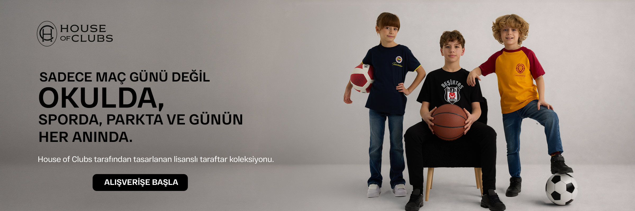 Çocukların enerjisini, takım sevgisini ve günlük stilini tek bir dünyada buluşturuyoruz. House of Clubs, küçük taraftarların kendini rahatça ifade edebildiği; ebeveynlerin ise güvenle tercih ettiği modern bir fanwear markasıdır.